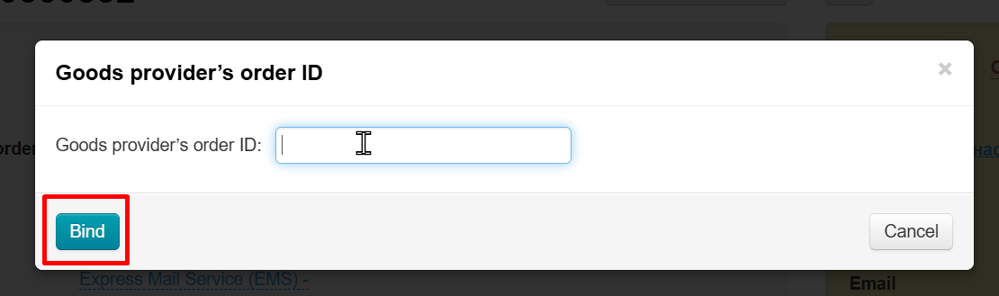In the opened window, enter the Taobao order number and click "Bind" button: