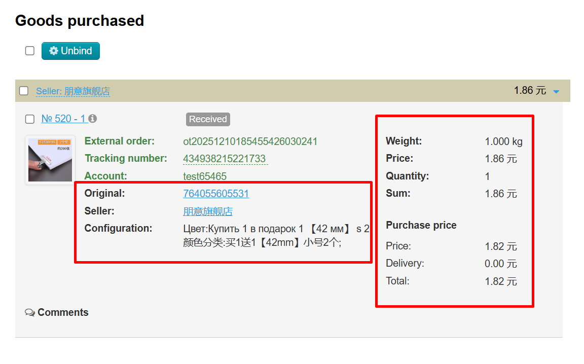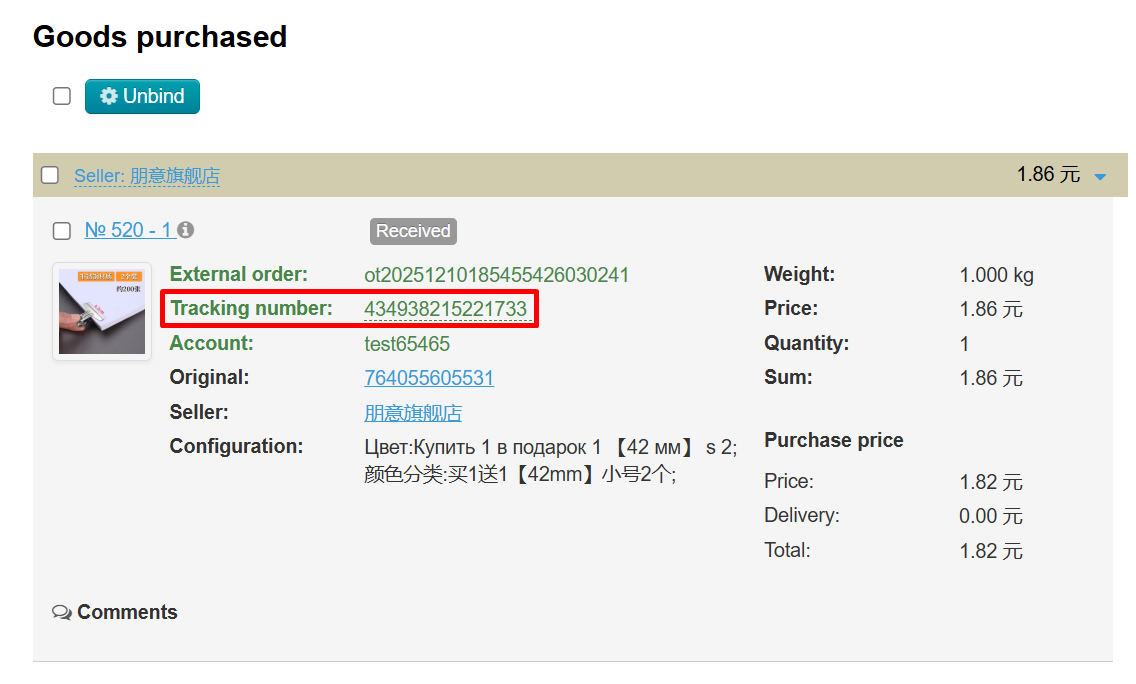 The system checks order statuses on your product provider’s side in the background. For example, if a product on Taobao is successfully purchased, this will be reflected in the admin panel, and the product will be assigned the corresponding ID.