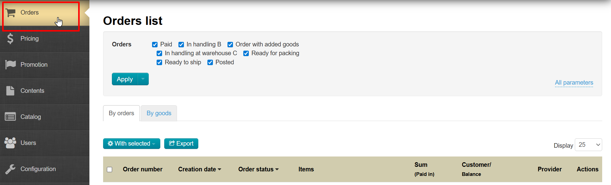 If you have a barcode scanner connected, you can use it to find items in the admin panel when receiving parcels with orders at the warehouse.
