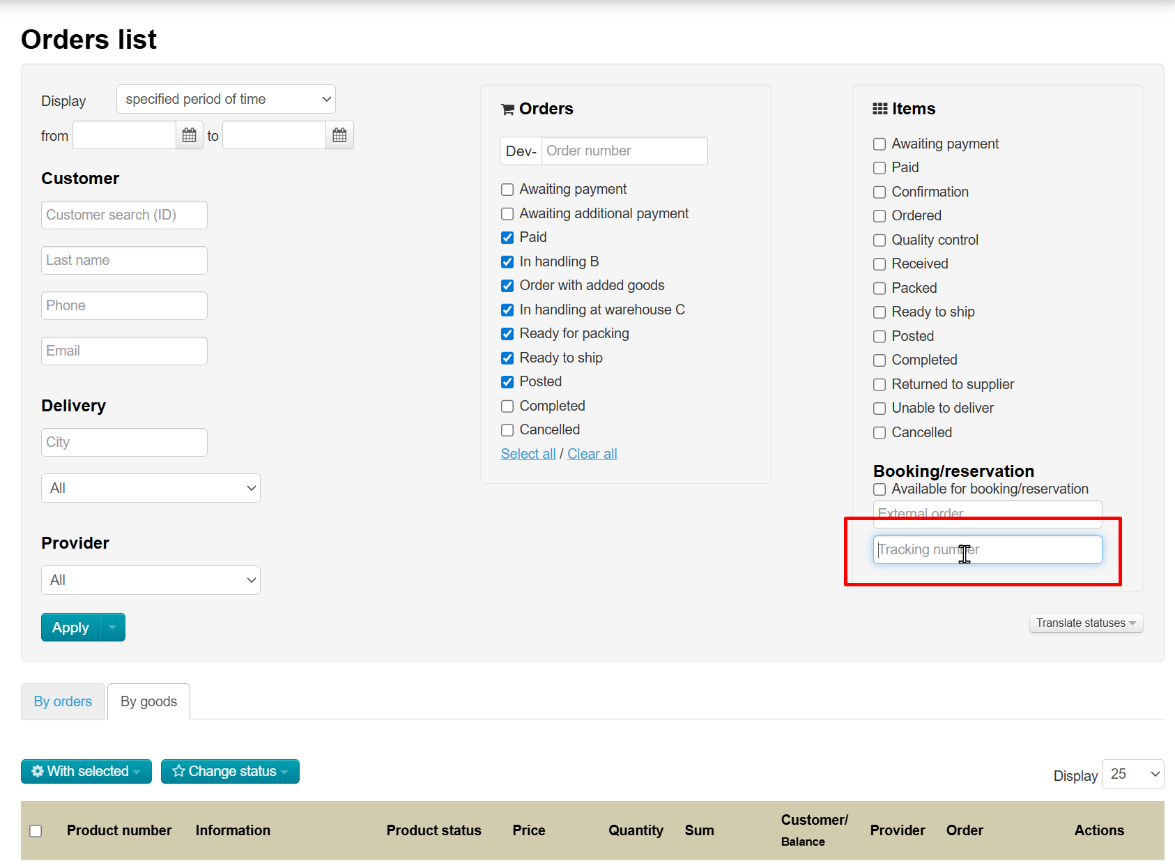 When the item is shipped by the product provider to the warehouse you specified in the settings, it will have a tracking number for monitoring within the product provider country (for example, China). Please note that this tracking number is displayed only in the admin panel and does not appear in the customer's account on your website: